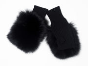 Mezzi Guanti in Cashmere da Donna con Pelliccia - Nero