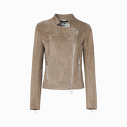 Design biker, modello in camoscio, chiusura con zip personalizzata L logo, tasche laterali.