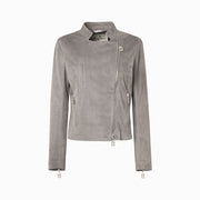 Design biker, modello in camoscio, chiusura con zip personalizzata L logo, tasche laterali.